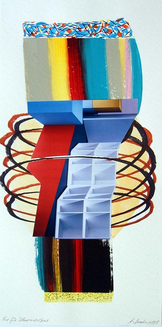 Maler, Balance halten!, 2009, Acryl-Collage, 50x64