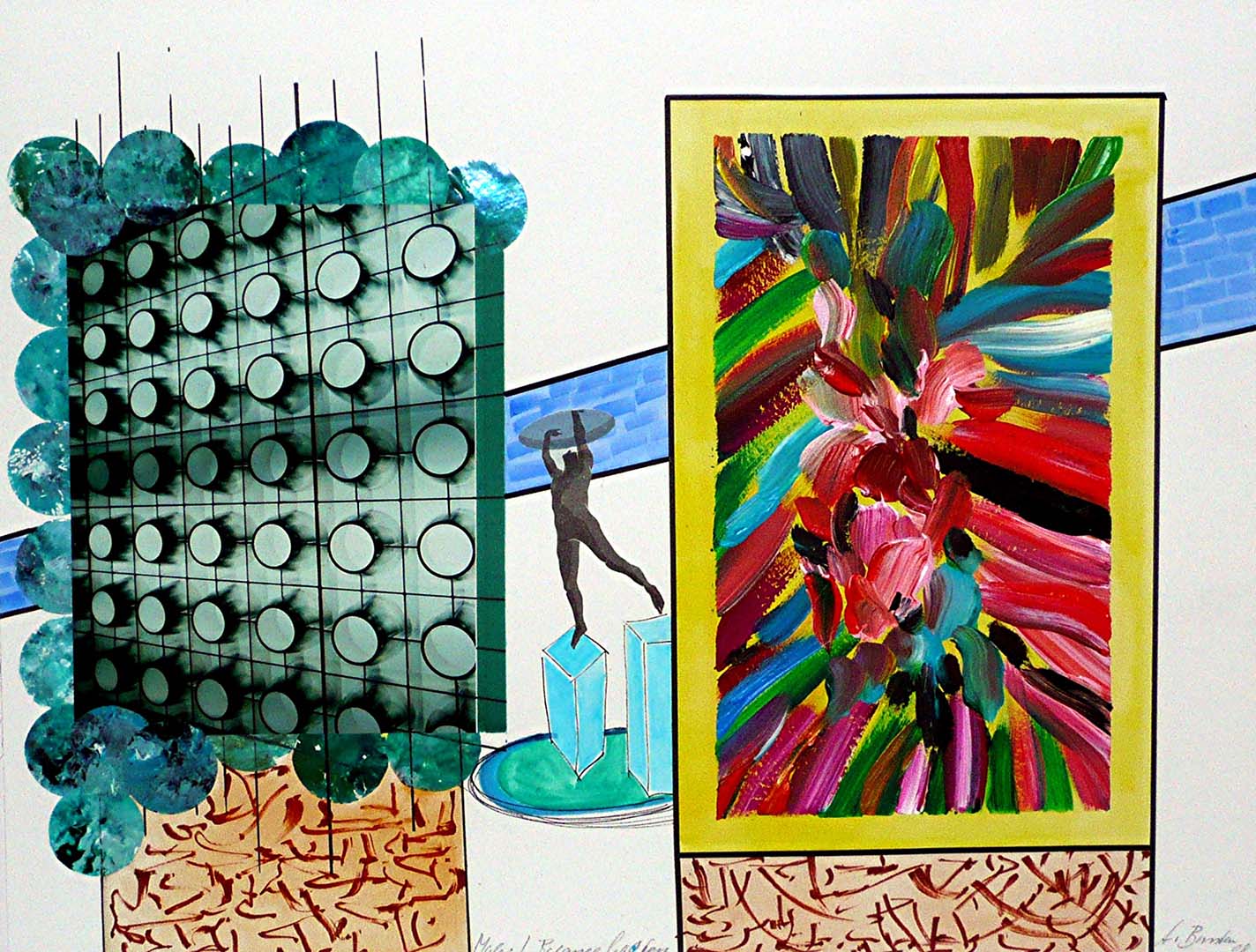 Schau hinter die bunten Fassaden, Mann!!, 2009, Acryl, Aquarell, Collage, 50x65