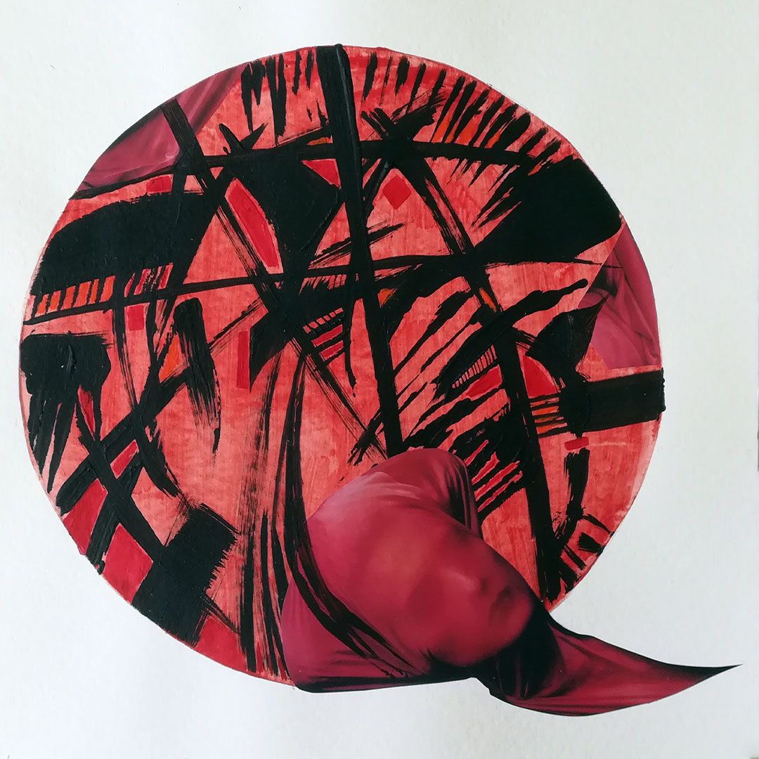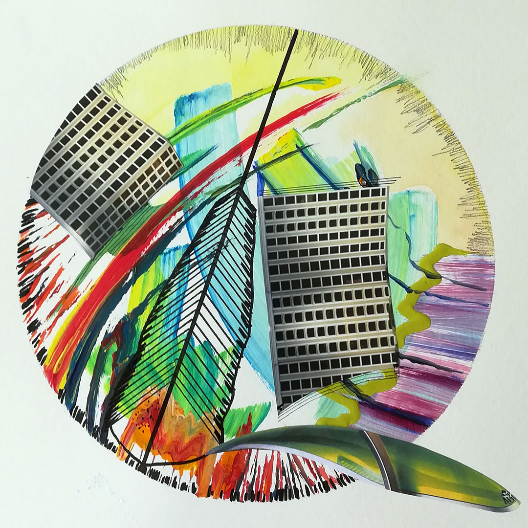 Decamerone Quarantäne 02, 40x40 auf Papier, Acryl, Zeichnung Collage, 2020