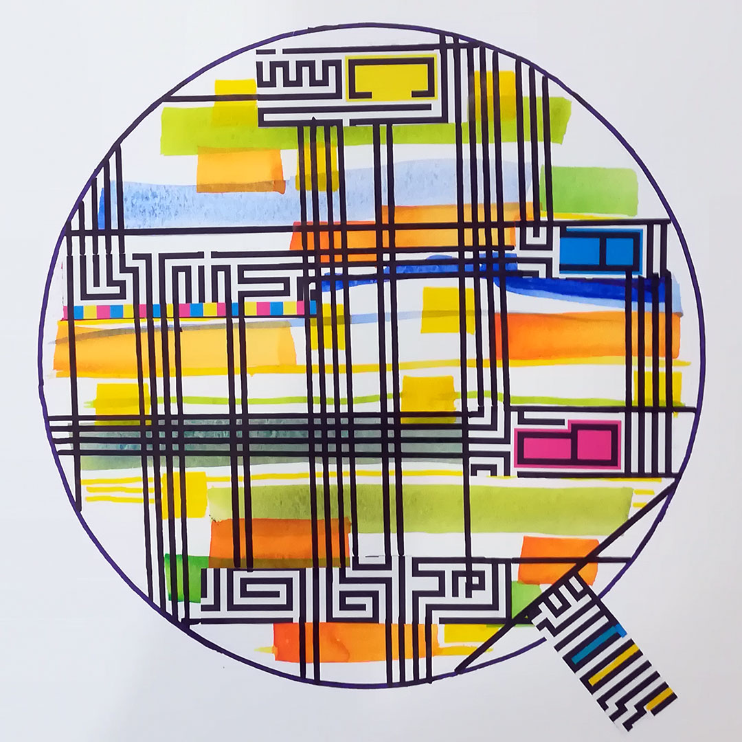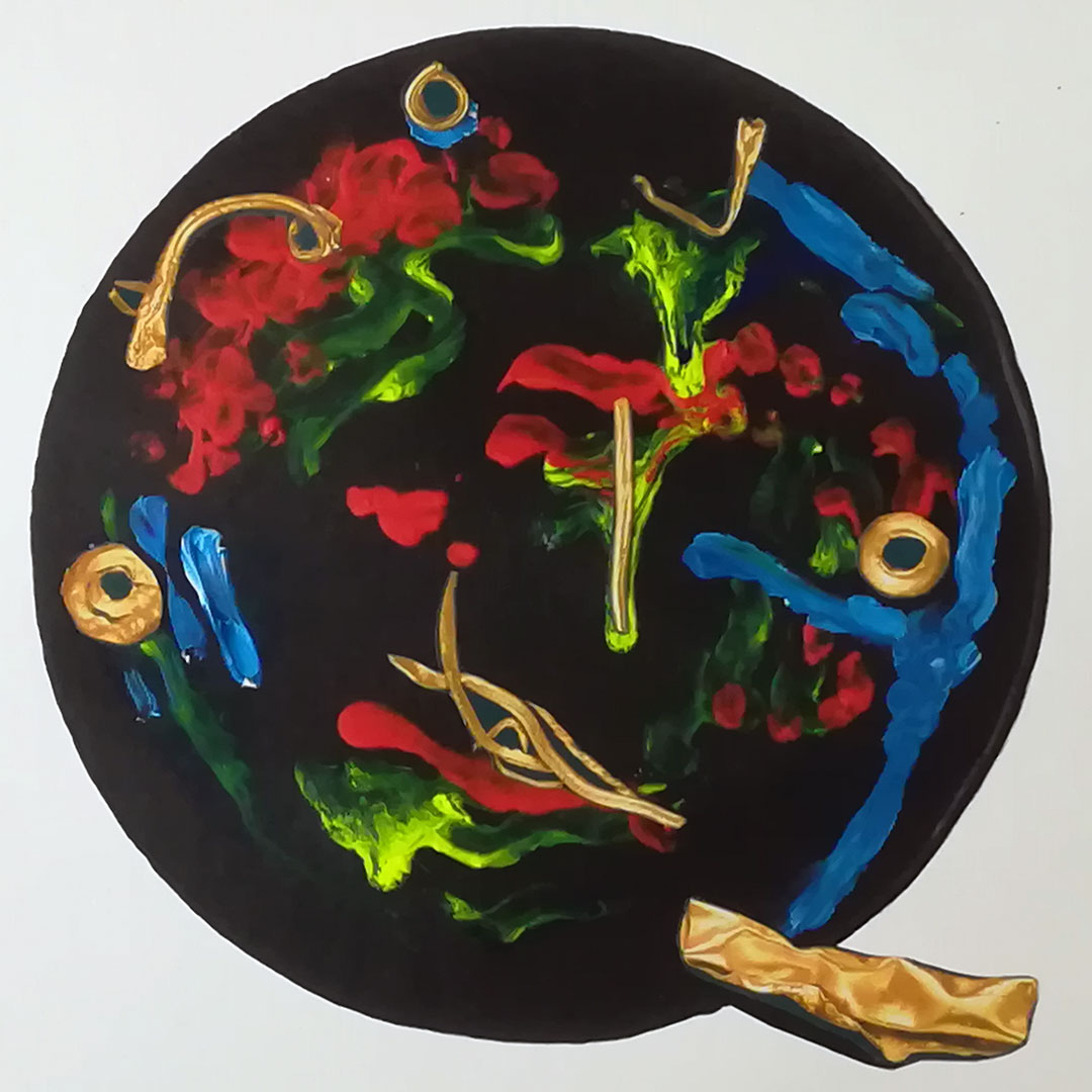 Decamerone Quarantäne 01, 40x40 auf Papier, Acryl, Zeichnung Collage, 2020