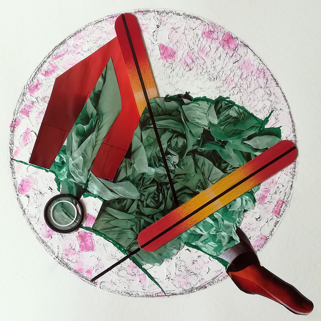 Decamerone Quarantäne 12, 40x40 auf Papier, Acryl, Zeichnung Collage, 2020