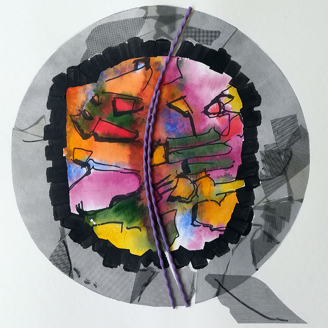 Decamerone Quarantäne 09, 40x40 auf Papier, Acryl, Zeichnung Collage, 2020