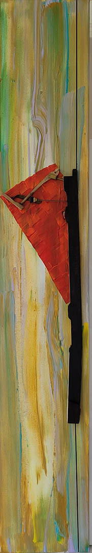 WEG! (2024) 120 cm x 20cm, Acryl auf Leinwand, Collage mit Klavierdetails, Zeichnung