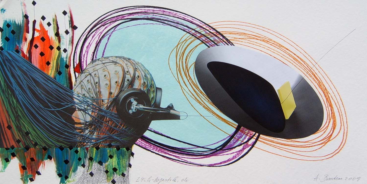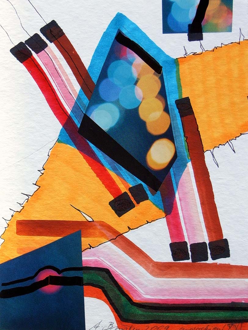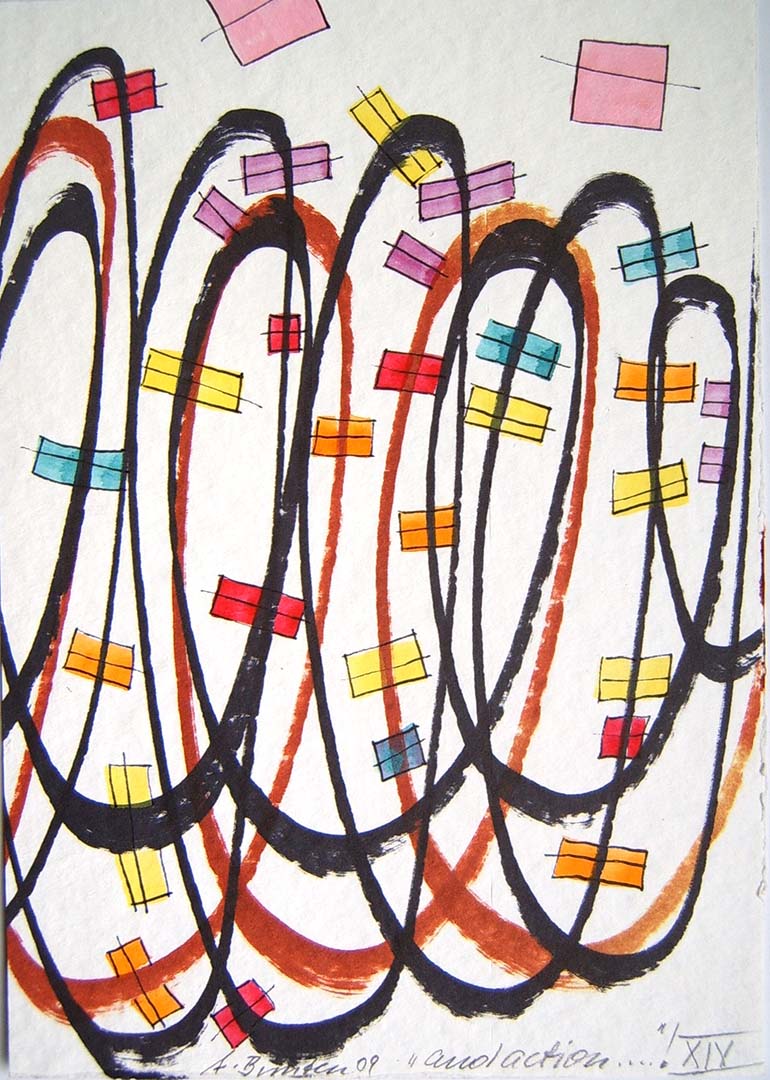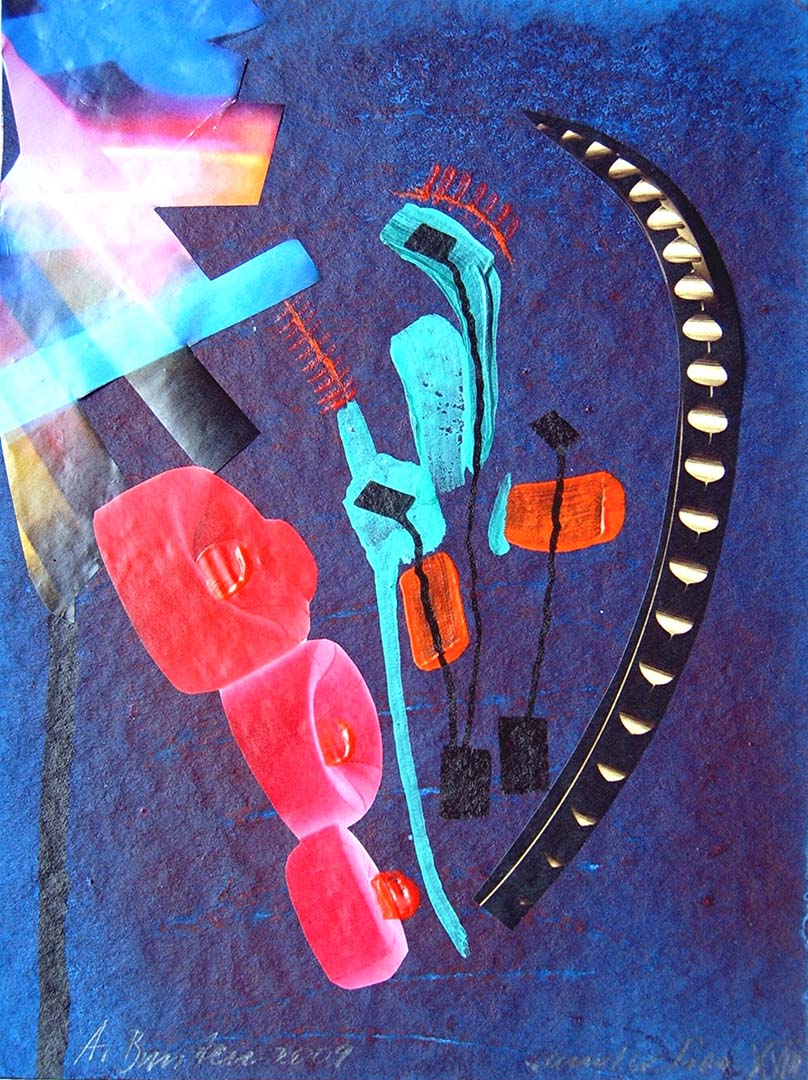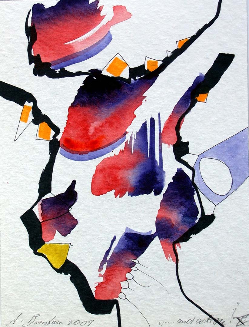 and action XXI, 2009, Aquarell-Collage, 15x20