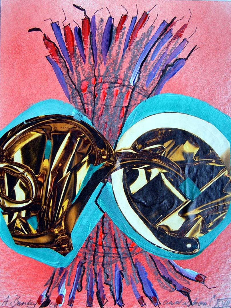 Reich sein, frei sein, immer mit dabei sein, 2009, Acryl-Collage, 50x67