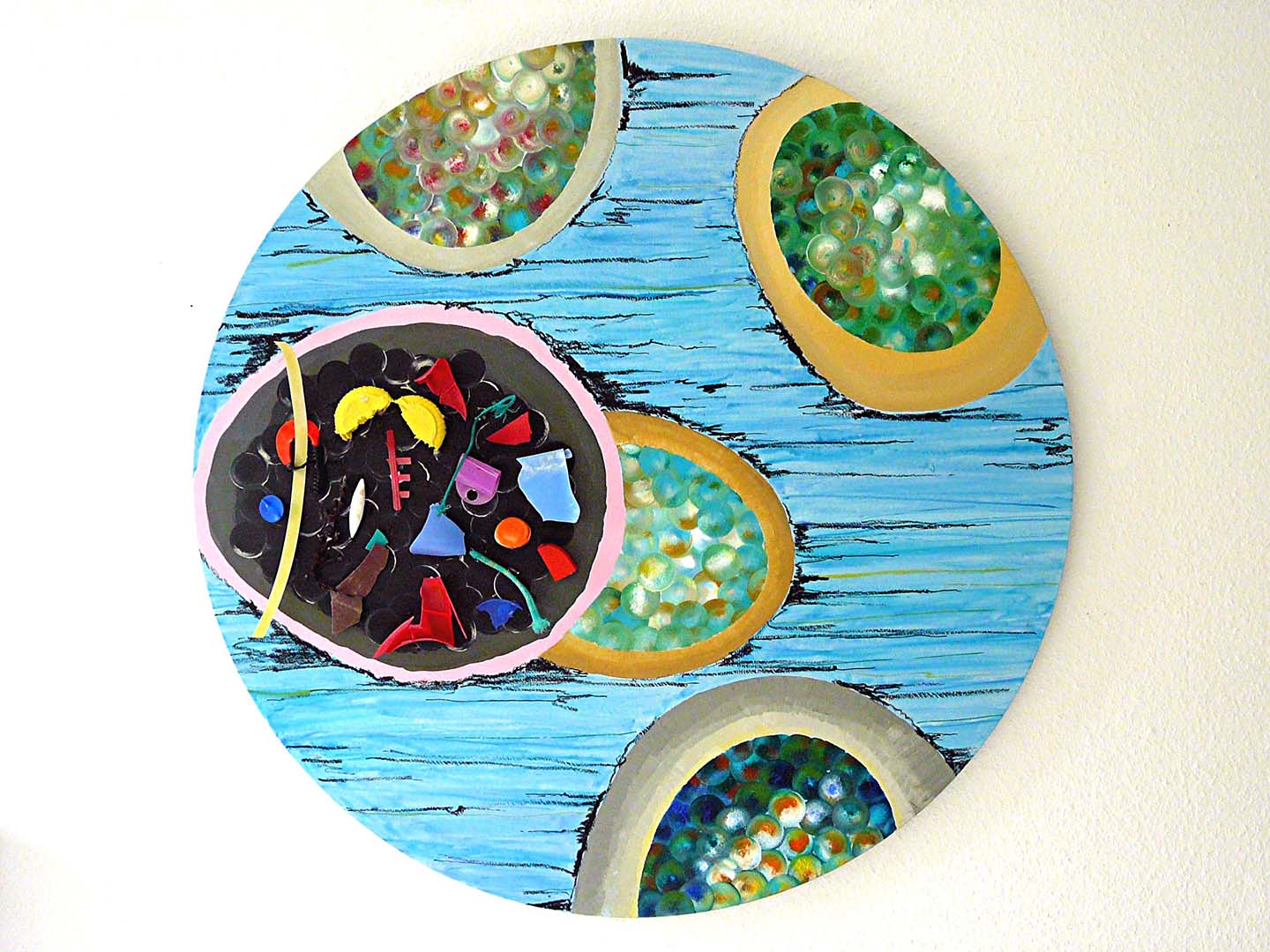 Trash Island, 2009, Acryl, Ölkreide, Collage, 100cm