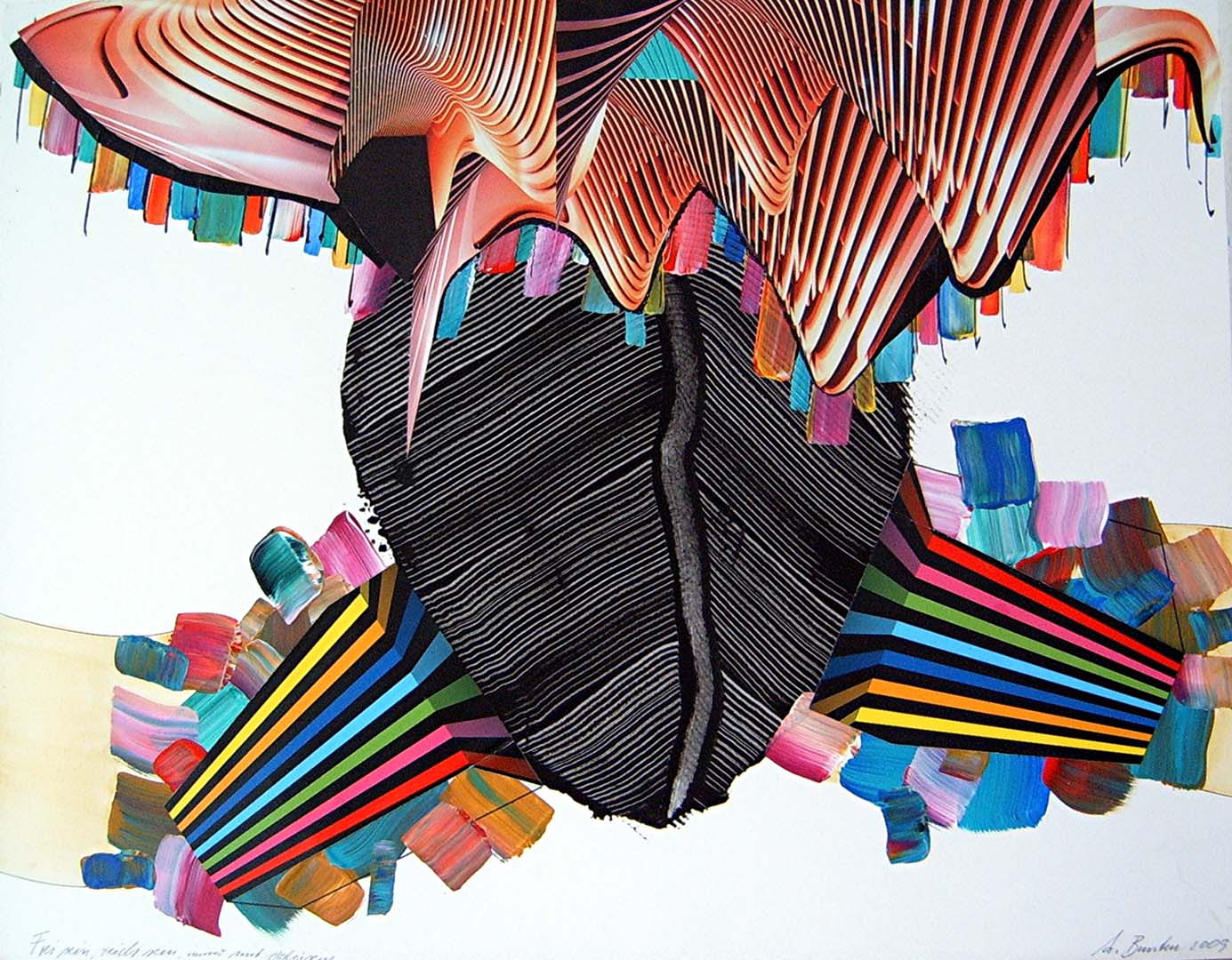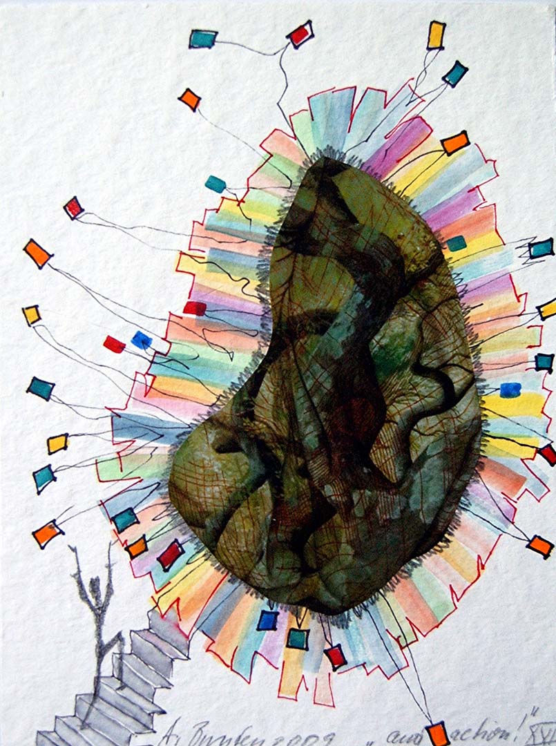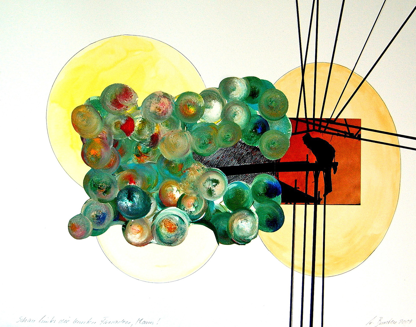 Schau hinter die bunten Fassaden, Mann!!, 2009, Acryl, Aquarell, Collage, 50x65