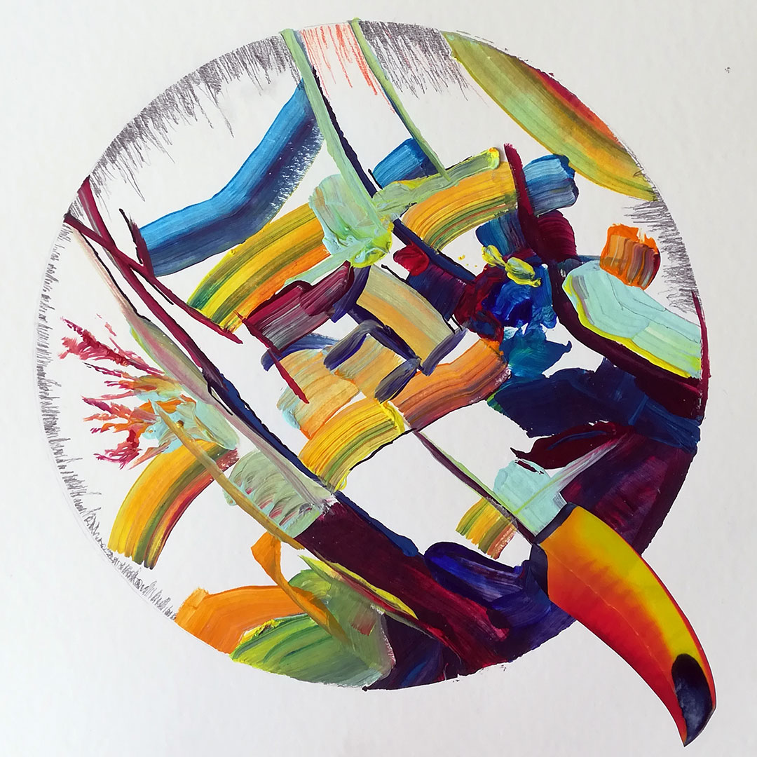 Decamerone Quarantäne 14, 40x40 auf Papier, Acryl, Zeichnung Collage, 2020