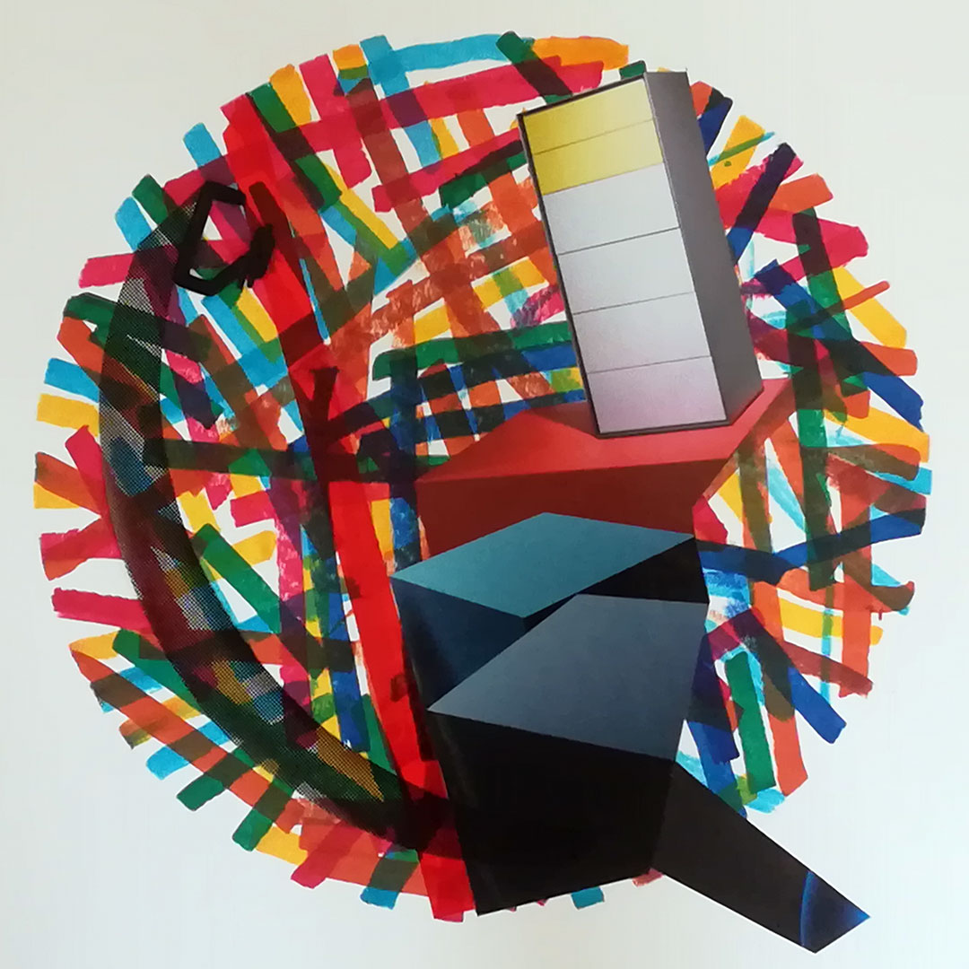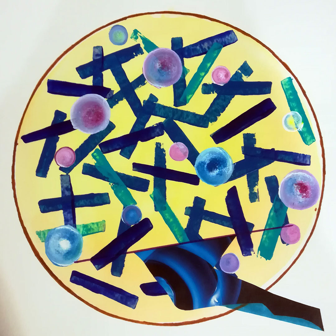 Decamerone Quarantäne 17, 40x40 auf Papier, Acryl, Zeichnung Collage, 2020