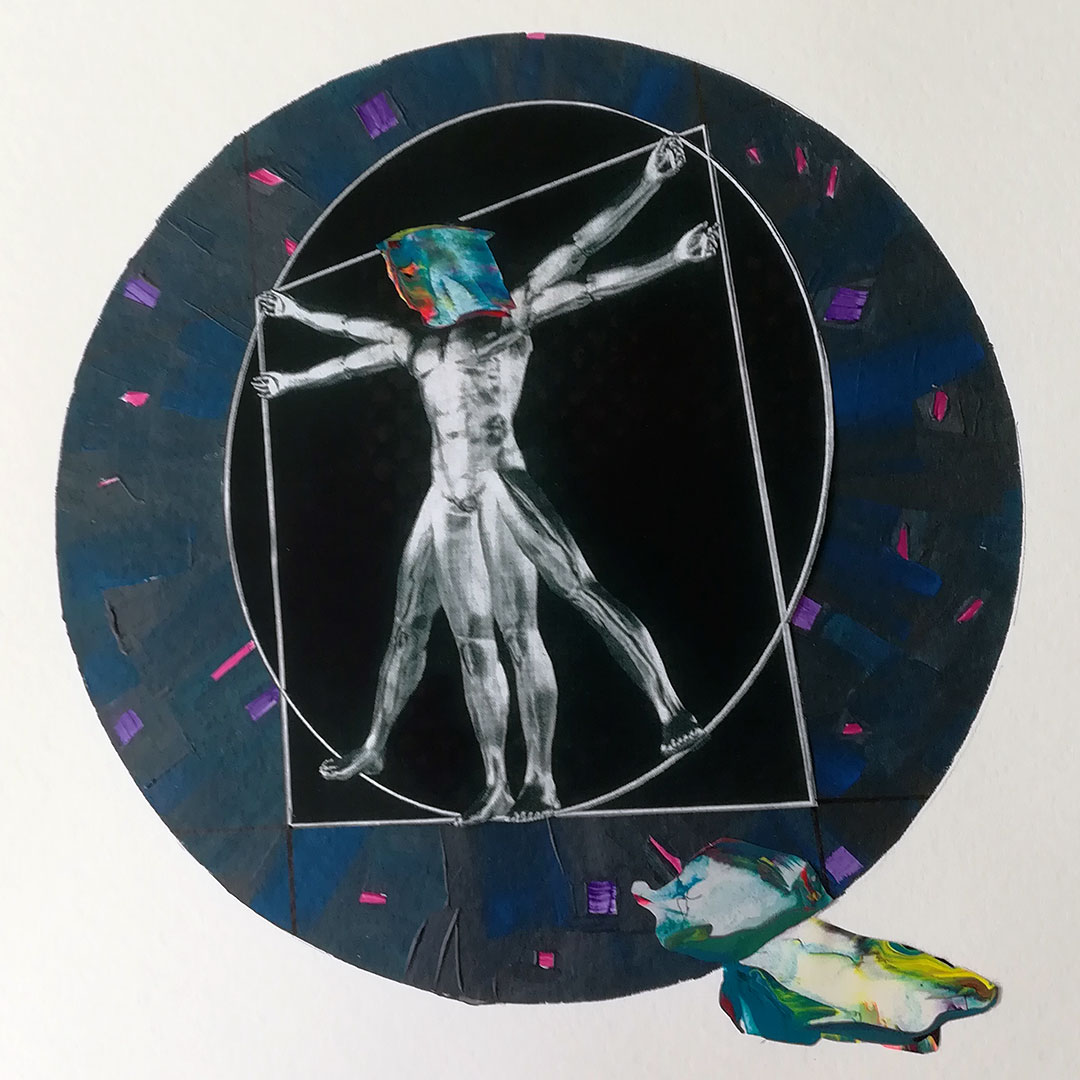 Decamerone Quarantäne 03, 40x40 auf Papier, Acryl, Zeichnung Collage, 2020
