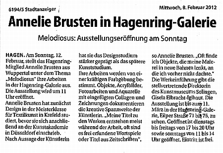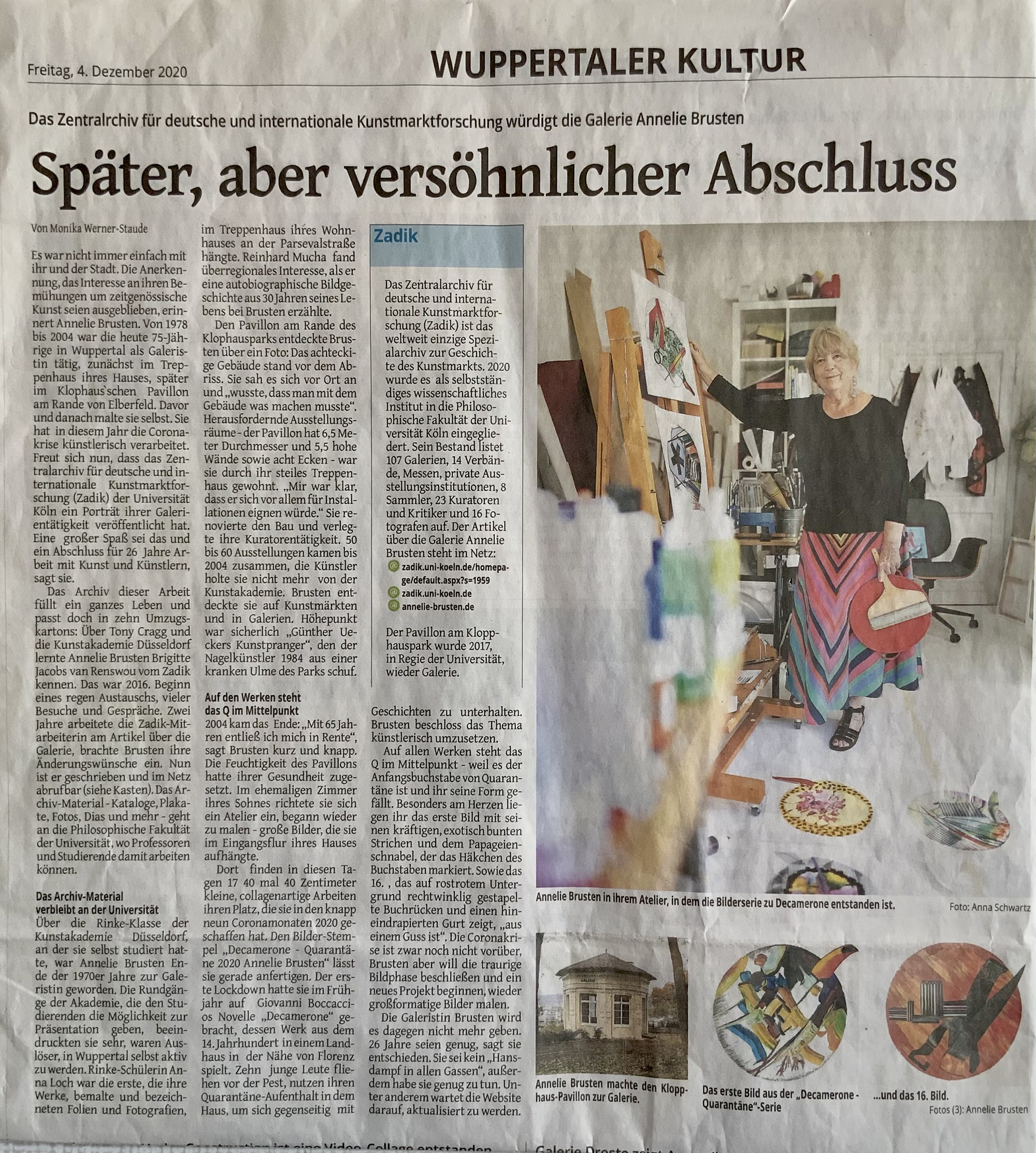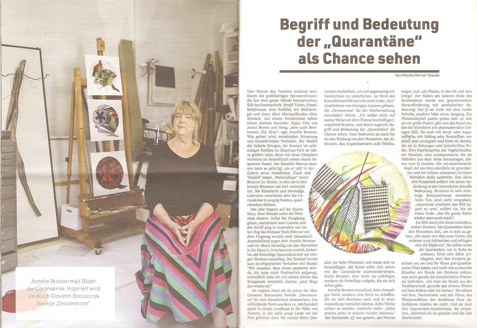 → Annelie Brusten malt Bilder zur Coronakrise (Westdeutsche Zeitung, 29. August 2020)